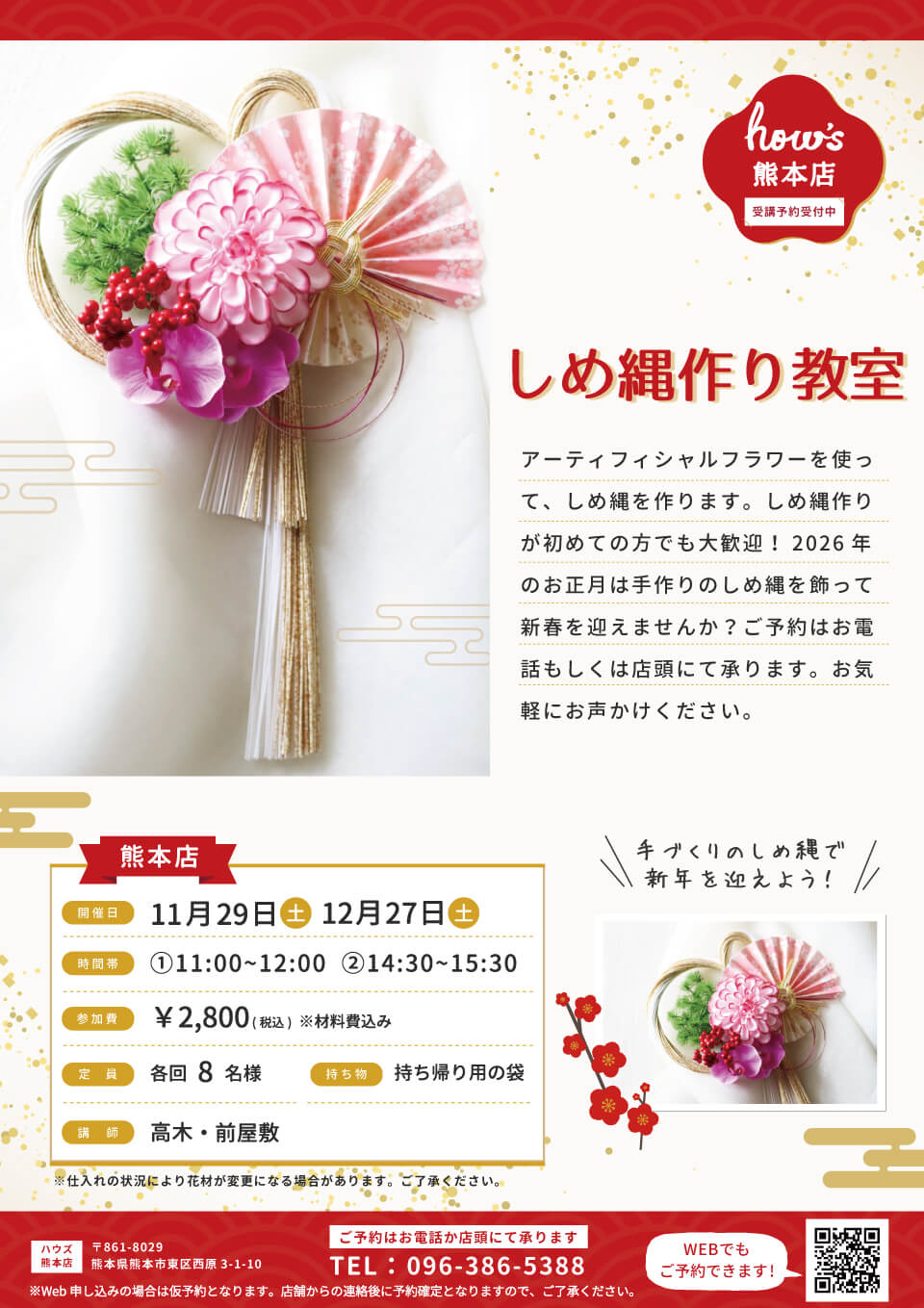 ハウズ熊本店ではワークショップやお料理、お花など各種教室を開催しております!