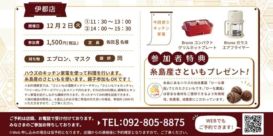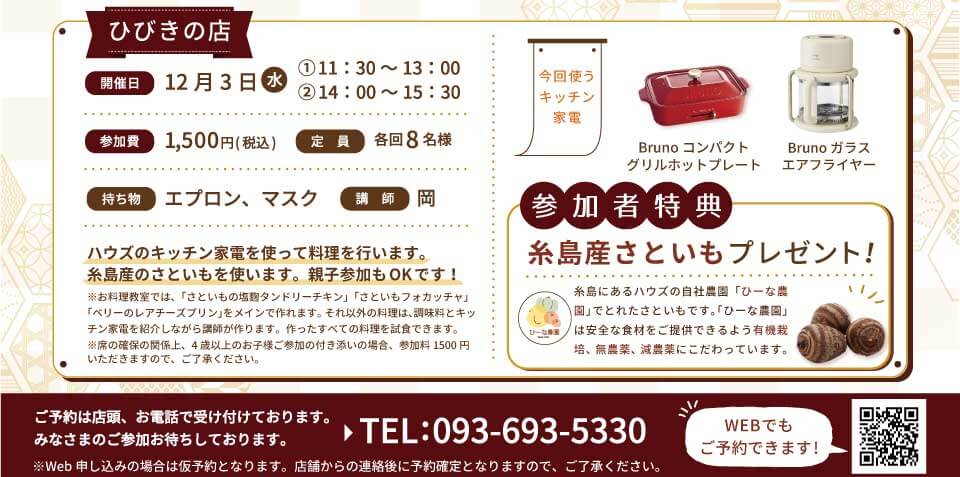 【ハウズひびきの店スクール】糸島産さつまいもお料理教室