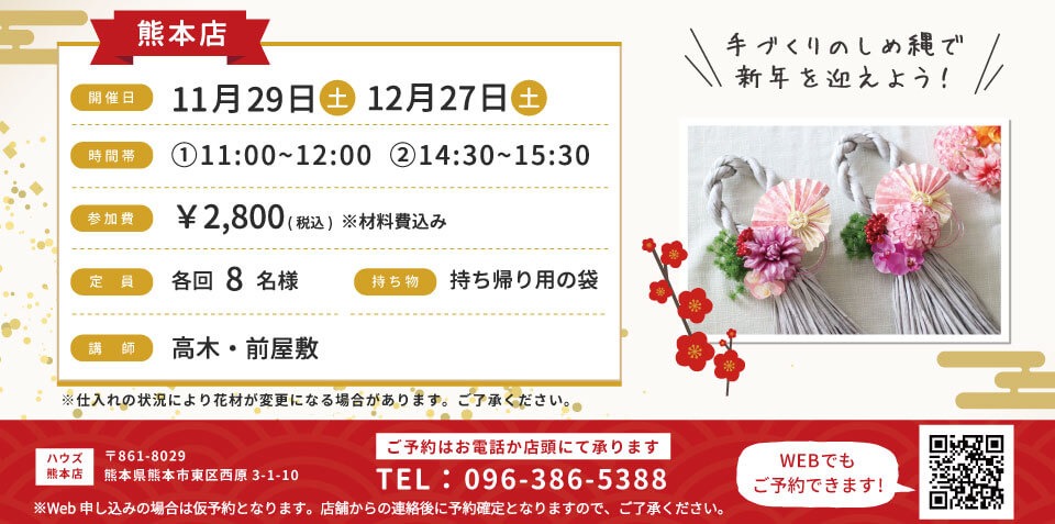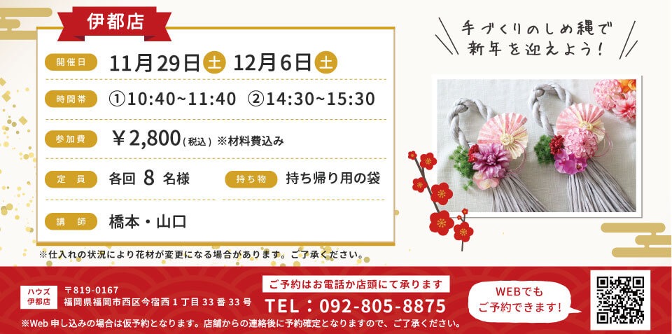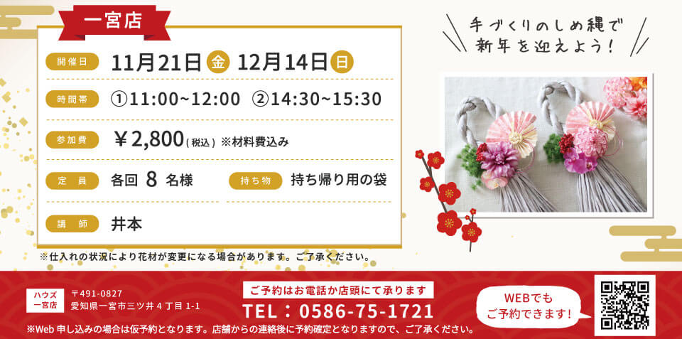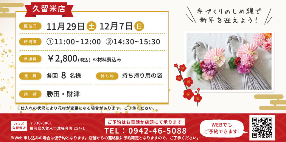 ハウズ伊都店・ひびきの店・久留米店・熊本店・一宮店ではワークショップやお料理、お花など各種教室を開催してます!