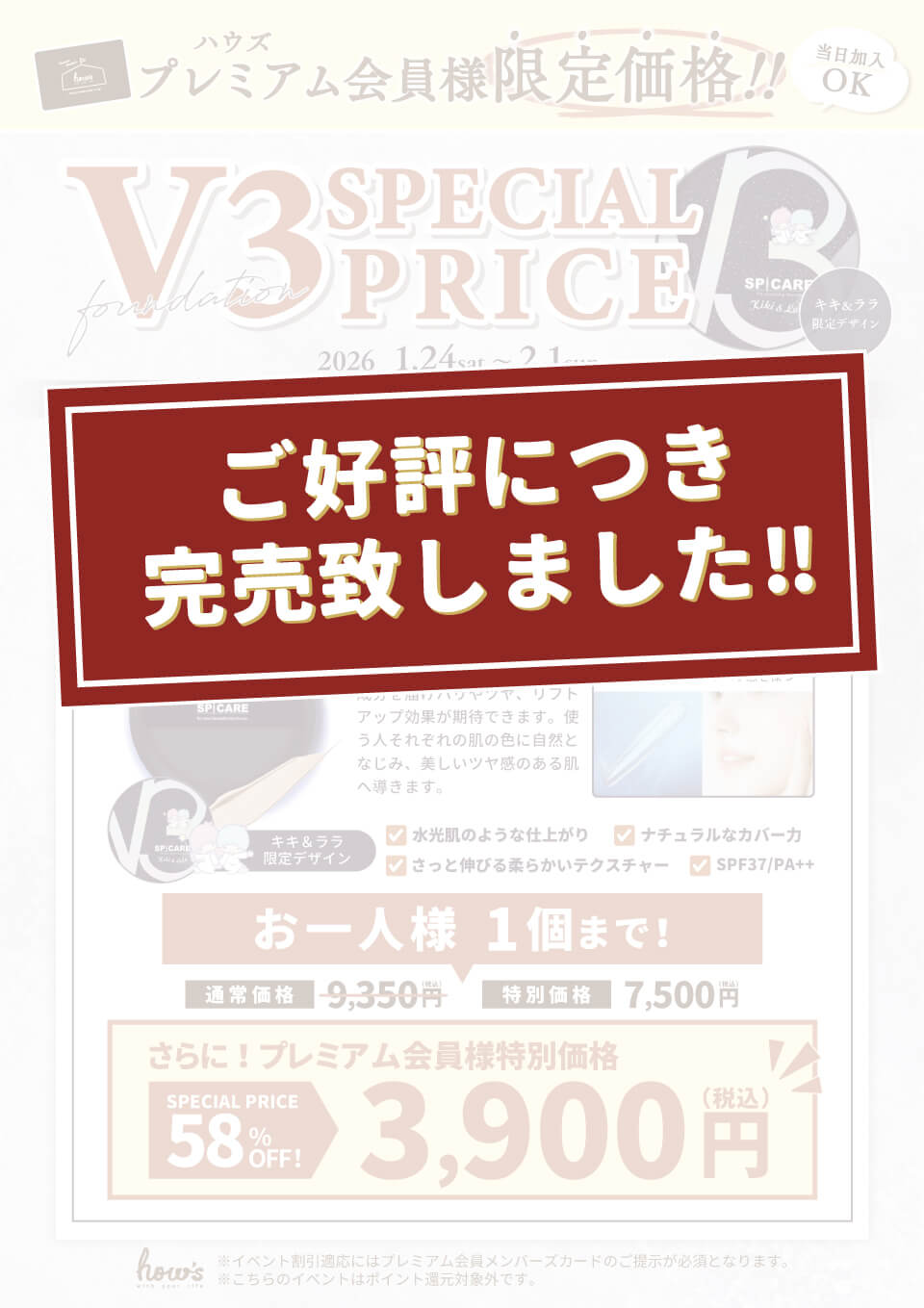 ハウズでも人気のスピケアV3ファンデーションが、プレミアム会員様限定で特別価格になっております😲✨