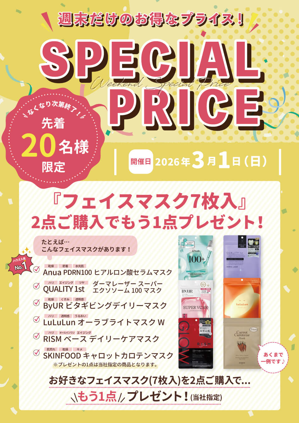 3月1日(日)の限定開催!