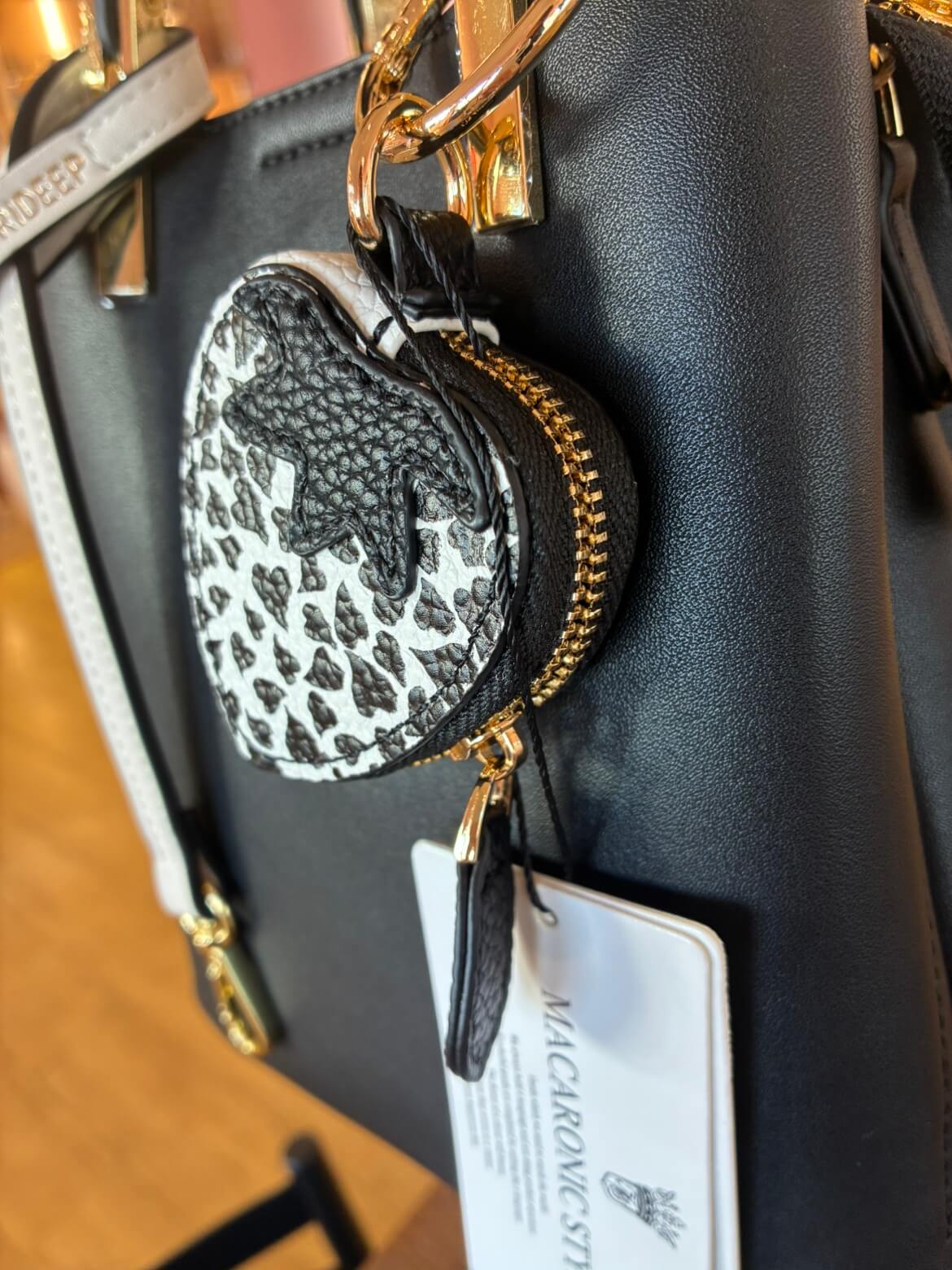 側面には〝MACARONIC STYLE”のロゴ入りで、チャックも付いているので鍵やリップなどを入れることもできますっ❣