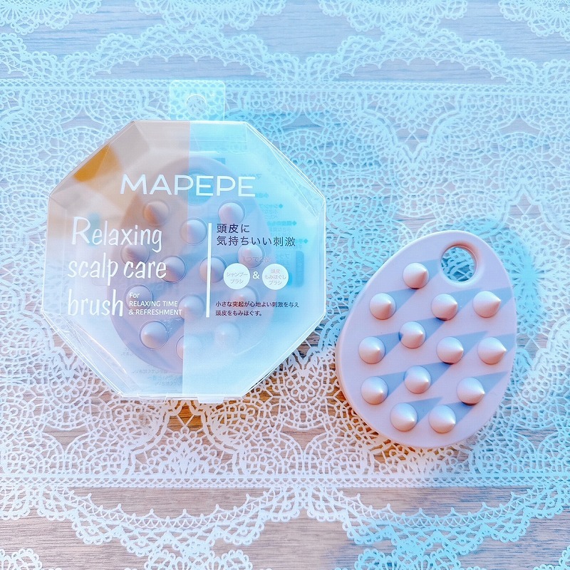 MAPEPEのリラクシングスカルプケアブラシはシャンプーブラシや頭皮もみほぐし用としても使用できます✨