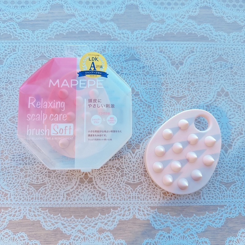 本日は、MAPEPEリラクシングスカルプケアブラシの紹介をさせていただきます♪