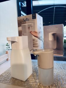 非接触で衛生的✨手をかざせば、サッと自動でアルコールが出てきます😊