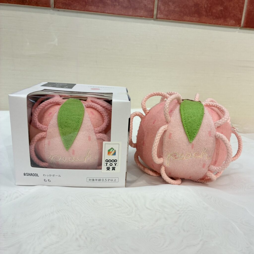 赤ちゃんに芽生えた好奇心の芽を健やかに伸ばしていくために、柔らかい紐のわっか(輪)を取り付け、赤ちゃんでも持ちやすいボールになっています🙌