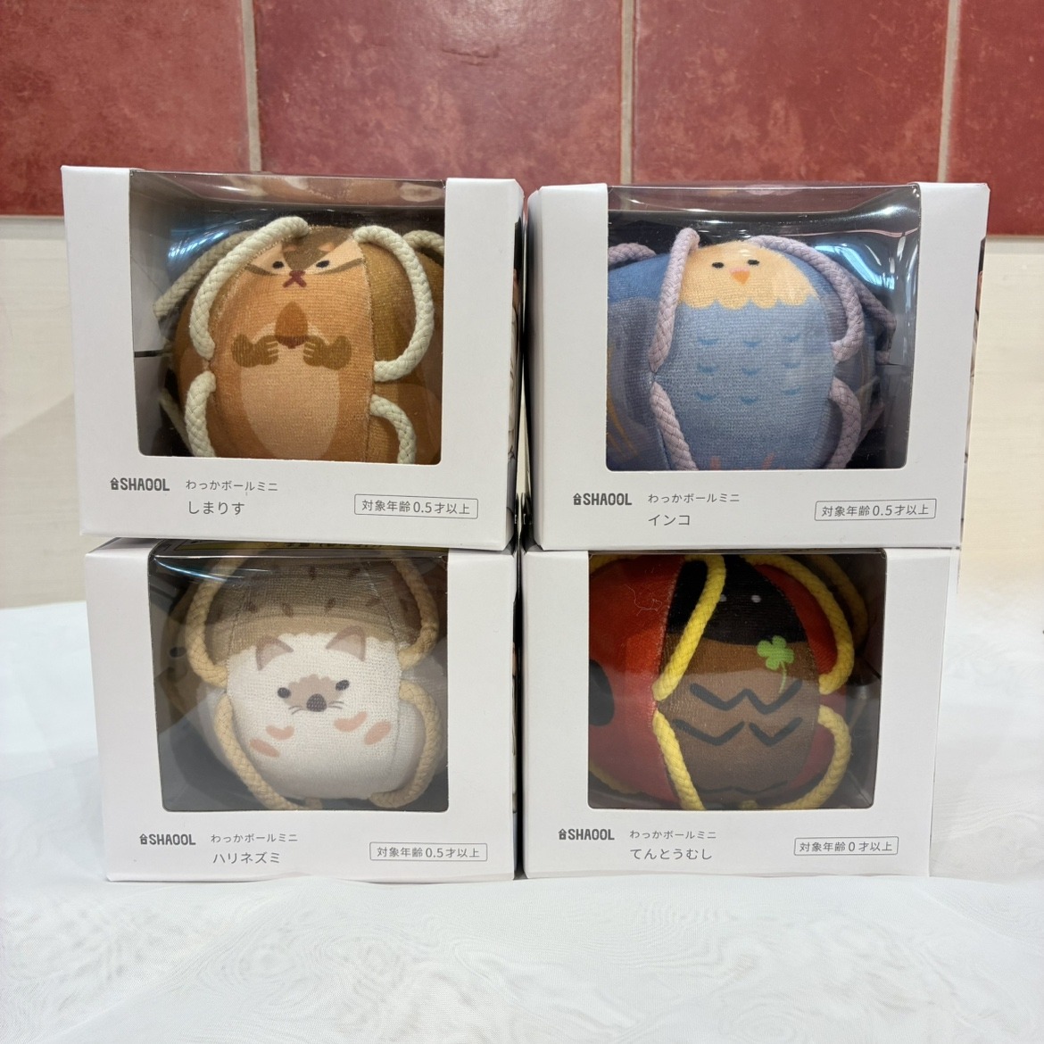 全て対象年齢0.5歳~になっており、掴む振る、離す、投げる、というよう遊びの中で早い段階から指先の感覚を刺激することで赤ちゃんの発達を促します!