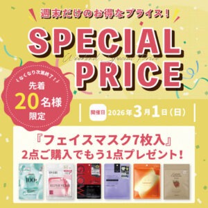 EVENT&NEWS 新着情報 2026年02月25日 \週末だけのお得なプライス!/Weekend Special Price! 2026年02月17日 【プレミアム会員様限定】POLA & VT cosmetics SPECIAL PRICE! 2026年02月17日 今月は『28日(土)』開催!プレミアム会員様の日♪ 2026年02月17日 3日間限定!NIPLUX MAX 30% OFF SALE!! 2026年02月12日 春トク!スペシャルセット♪ 2026年02月12日 ご好評につき2月末までの追加開催!NIPLUX プレゼント!! 2026年02月12日 \週末だけのお得なプライス!/Weekend Special Price! 2026年02月10日 【プレミアム会員様限定】お花の寄せ植えプレゼント!