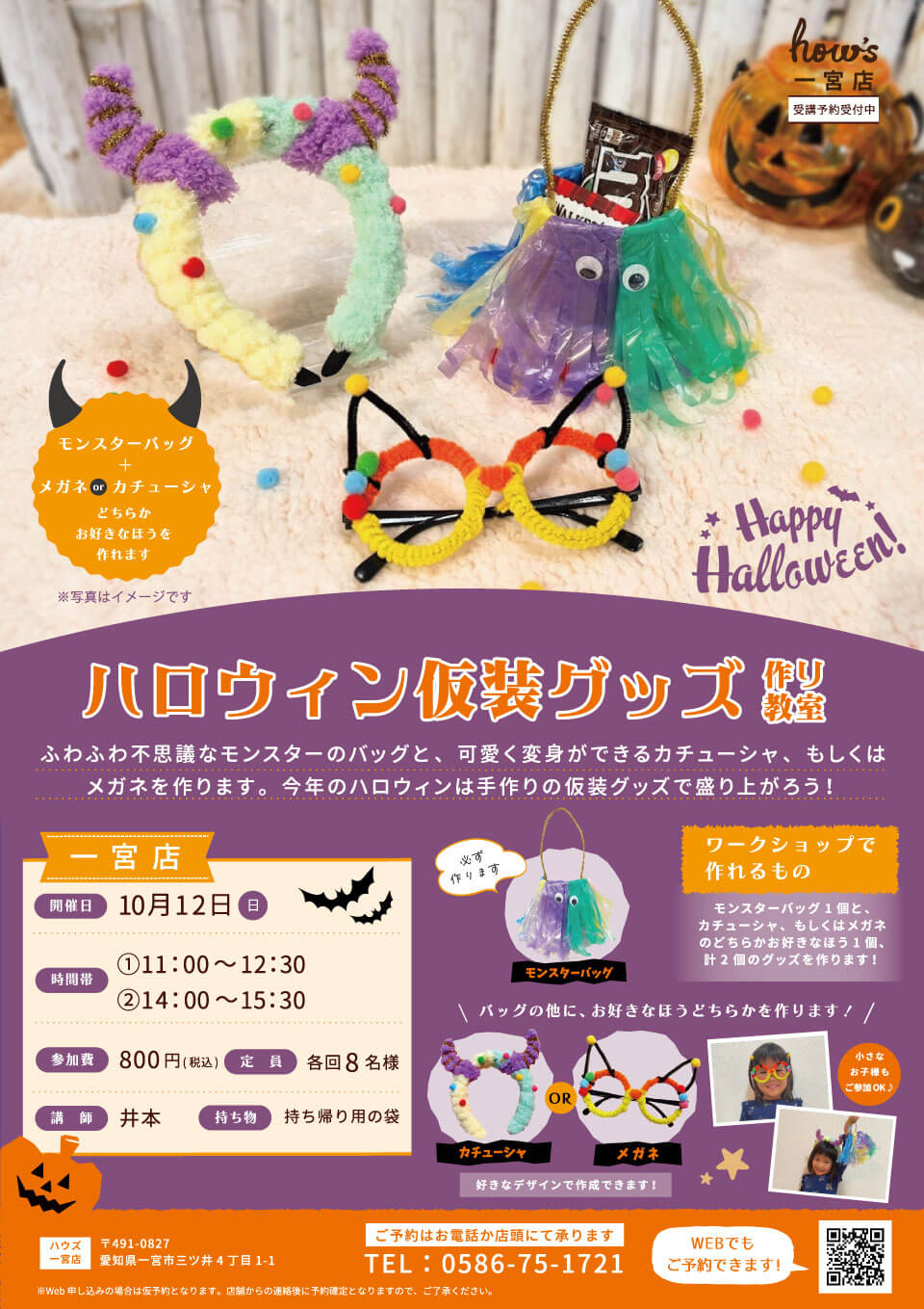 ハウズ一宮店ではワークショップやお料理、お花など各種教室を開催しております!