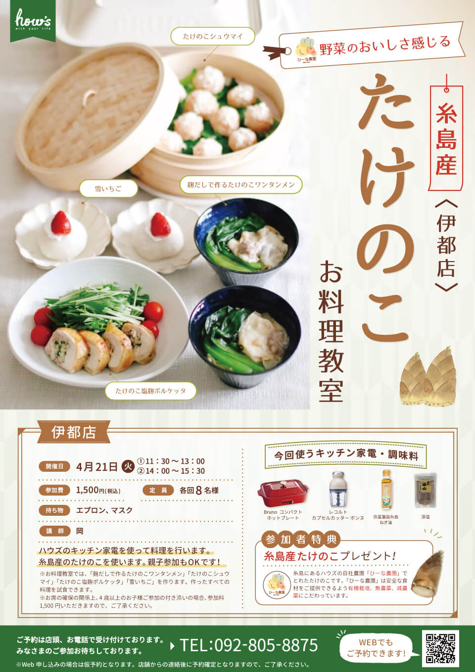 ハウズ伊都店ではワークショップやお料理、お花など各種教室を開催しております!